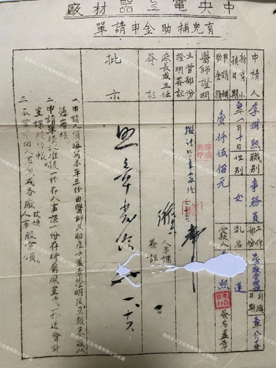 ▲1945年1月中央電工器材廠(昆明電纜集團前身)發(fā)放職工育兒補助國幣1500元。