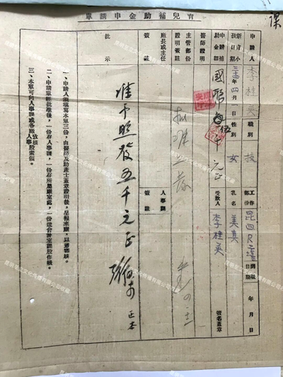 ▲1942年9月,中央電工器材廠(昆明電纜集團前身)發(fā)放職工育兒補助國幣200元。