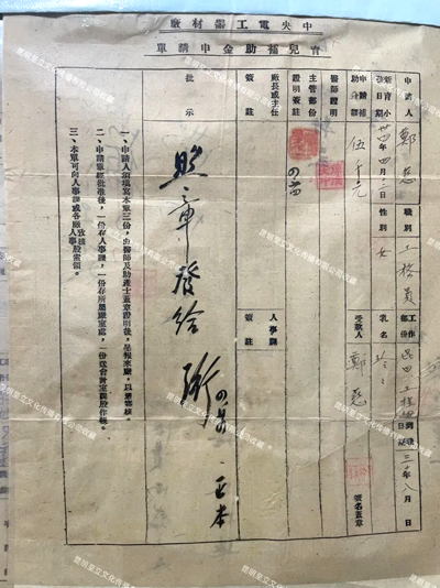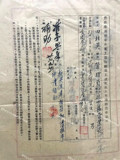 ▲1943年10月中央電工器材廠(昆明電纜集團前身)發(fā)放職工育兒補助國幣300元。