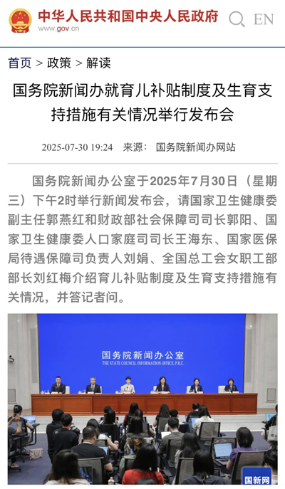 ▲2025年7月30日,中華人民共和國國務院公布,面向全國家庭,從2025年1月1日起,對所有1至3歲的兒童,均可申領每年3600元人民幣的育兒補貼!